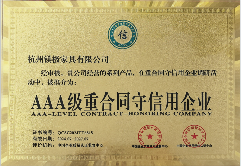 镁极家具从客户需求出发,在家具生产行业大力弘扬大国工匠精神,执着专注、精益求精、推陈出新,为客户全力打造最为完美的家具解决方案。公司将凭借与时俱进的自主研发实力、精湛的生产工艺、卓越经典的品质以及贴心细致的服务保障,为发展民族工业、跻身国际名牌而不懈努力。